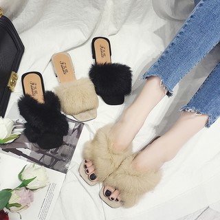 Mới Mùa đông Bông Dép Nữ Cao Gót Thỏ Dày Dép Có đế Phim Hoạt Hình