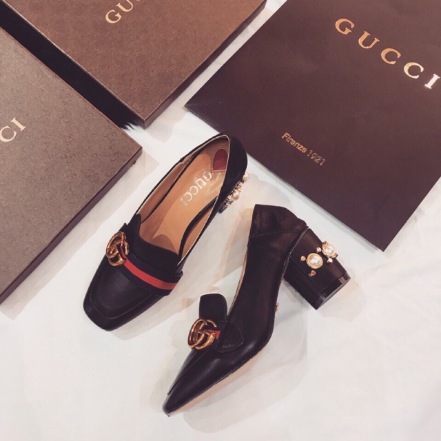 Giày Gucci Mũi Vuông Gót Trai Viền Xanh đỏ
