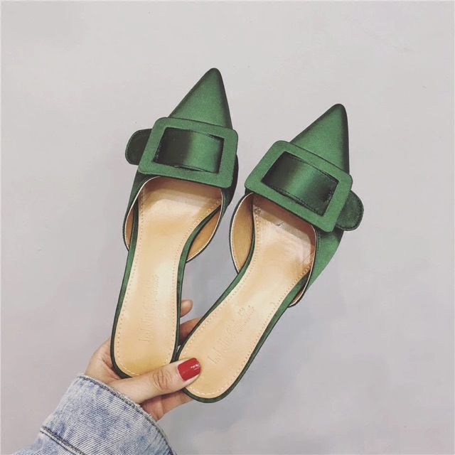 Mới Nhất Guốc Nữ Mirabella Quai Mảnh đế Trong 146 Màu Xanh Rêu Kèm