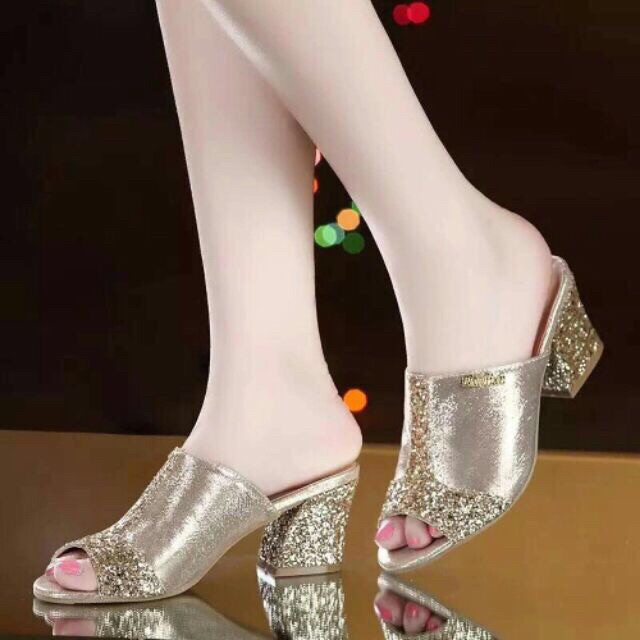Cao Gót Trung Niên Guốc Dép Gắn Kim Tuyến Size 34 đến 41