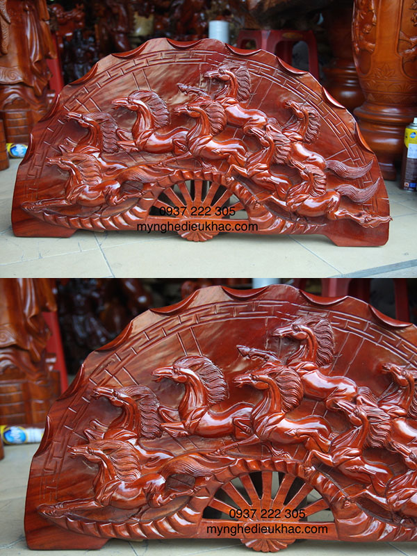 Nội Thất 288 Tranh đục Bát Mã Gỗ Hương 1m X 2m Tk27