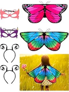 Beelittle Butterfly Wings Costume for Girls Kids with Antenna Headband and Cute Mask Costumes