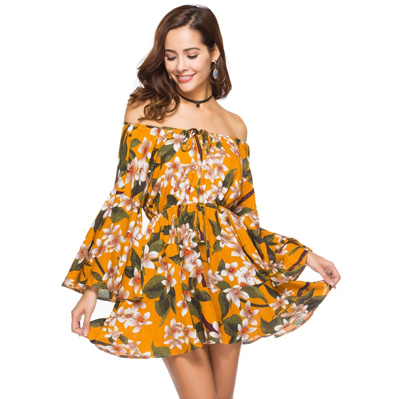 Boho Mini Dress Summer Beach Party Dress 2020 Flower Print Off Shoulder Sexy Casual Cover Up Beach Robe Courte Womens Dresses Red Prom Dresses From Longmian 24 75 Dhgate Com