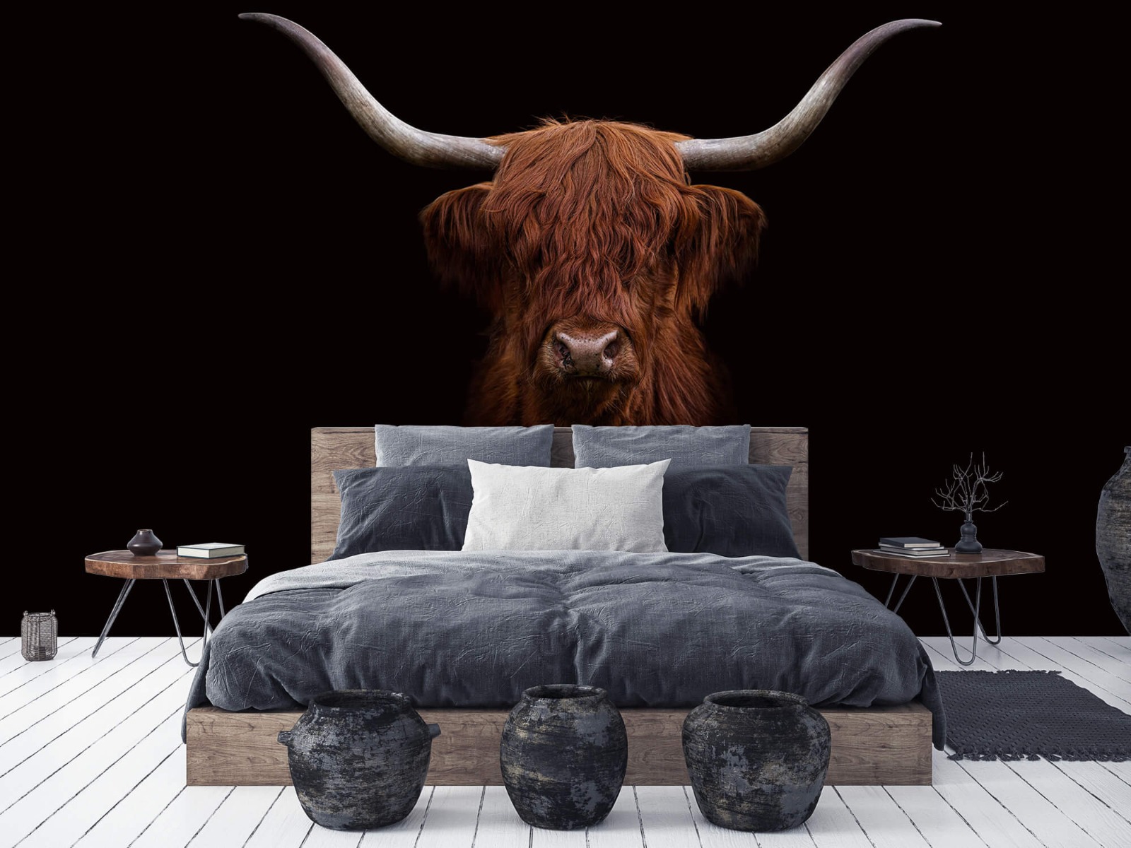 Schotse hooglander op donkere achtergrond - Fotobehang