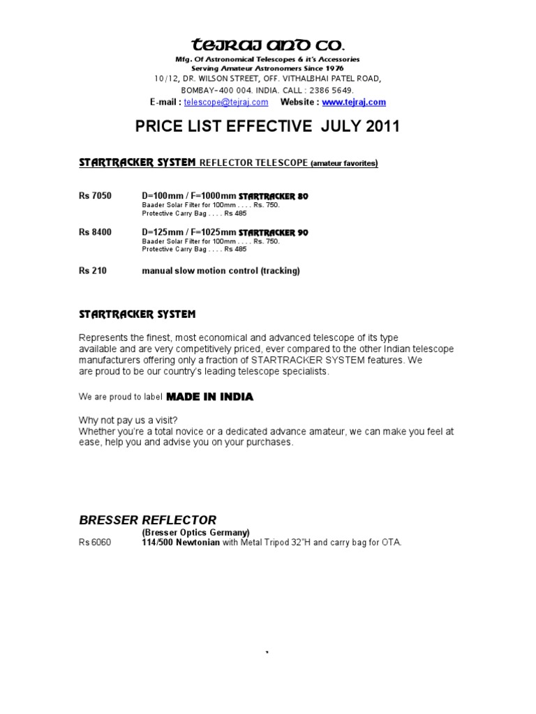 Tejraj Price List | Optical Devices | Laboratory Equipment