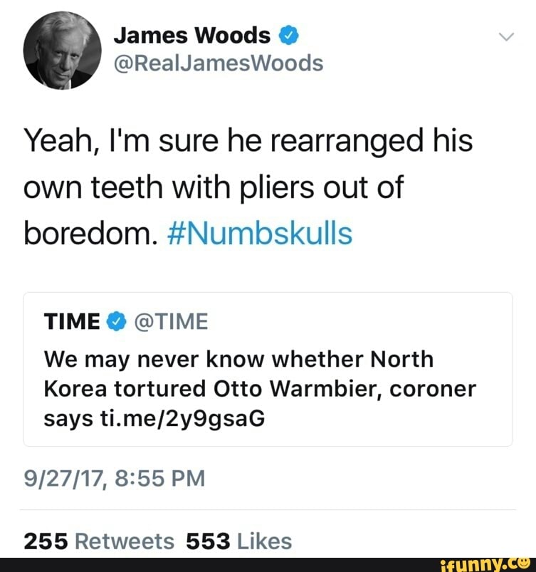 Yeah I M Sure He Rearranged His Own Teeth With Pliers Out Of Boredom Numbskulls We May Never Know Whether North Korea Tortured Otto Warmbier Coroner Says Ti Me 2y99 Ag 9 27 17 8 55 Pm